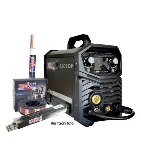 - WELCO 6201DP je určen pro svařování ocelí, nerez ocelí, Al a Cu slitin metodami MIG/MAG, MMA a TIG.